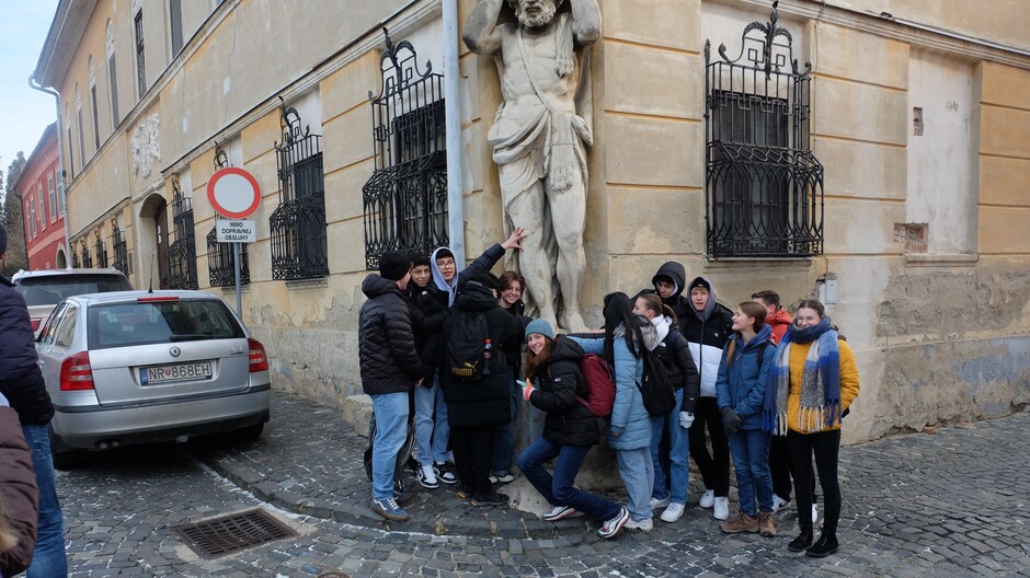 Mit einem herzlichen Empfang begann eine ereignisreiche Woche. Wir erlebten unterschiedlichen Aktivitäten in der Schule und in der Stadt Nitra. Auf den Exkursionen in die Hauptstadt Bratislava, in die alte Bergbau- und Münzstadt Kremnica und nach Wien gab es viele Eindrücke – sei es die aufgestaute Donau und die moderne Kunst in Danubiana, die neuen Münzen für Ecuador und das selbstständige Prägen einer Münze in Kremnica oder die überraschende Begegnung mit Napoleon zu Pferd in Wien. Unvergesslich ist die Schneeballschlacht bei Sonnenschein am (slowakischen) Mittelpunkt Europas.