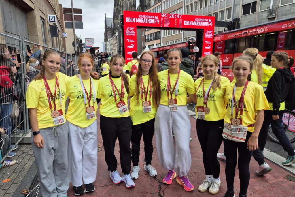 Erfolgreich beim Kölner Schulmarathon: Unsere Mädchenstaffel läuft auf den dritten Platz.